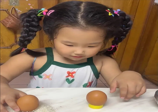 秋分竖蛋的来历是古时候对传统节气的庆祝。秋分是一年中最容易把鸡蛋立起来的一天,因为秋分这一天是时间平衡,白天和夜晚平衡,蛋站立的稳定性最好。看我们能不能把蛋竖起来呢?小朋友们通过多次尝试,欣喜地发现手中的鸡蛋居然立起来了,充分体会到竖蛋成功的快乐。秋分时节,要吃“秋果”,除了秋月梨外,橘子、石榴、柚子也是不错的选择。看,小朋友吃的连嘴都合不拢了。 秋分时昼夜等长,是玩影子游戏的最佳时节。秋分这天,小朋友们正在和好伙伴们玩影子的游戏,体验追风逐影的快乐!