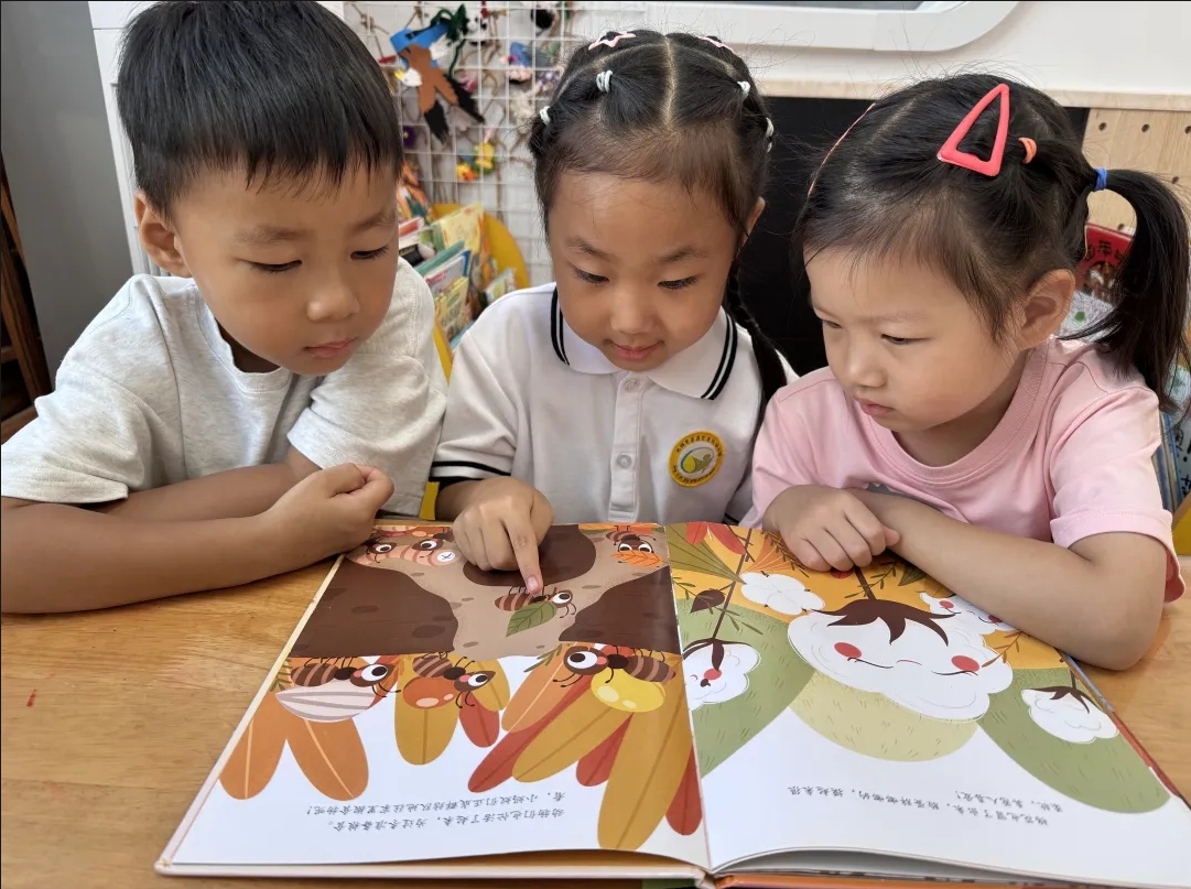 绘本里藏着许多秋分的秘密,孩子们认真地阅读、倾听,发现秋分的秘密:原来,秋分是二十四节气中的第十六个节气,秋分这一天白天和黑夜一样长。秋分过后白天越来越短,晚上越来越长,昼夜温差也逐渐加大......