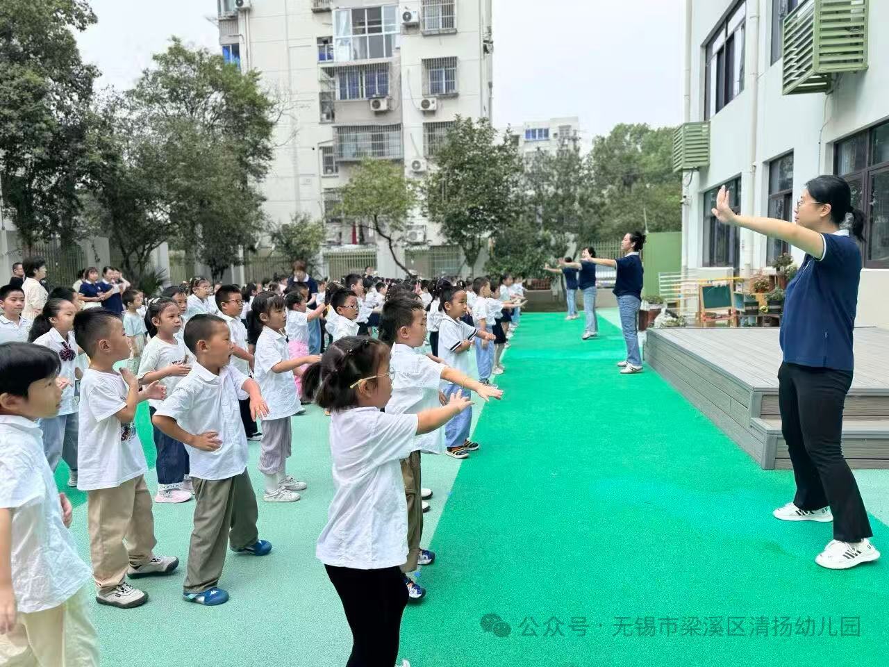 早操是一件让我们开心的事情,跟着好听的音乐舞动、拉伸起来,开启活力满满的一天!2025年9月26日上午,无锡市梁溪区清扬幼儿园开展了早操观摩活动。各级部小朋友身着整齐服装,以饱满的热情、稚嫩却有力的动作,在操场上展现蓬勃朝气,为园区的早晨注入了一股活动。