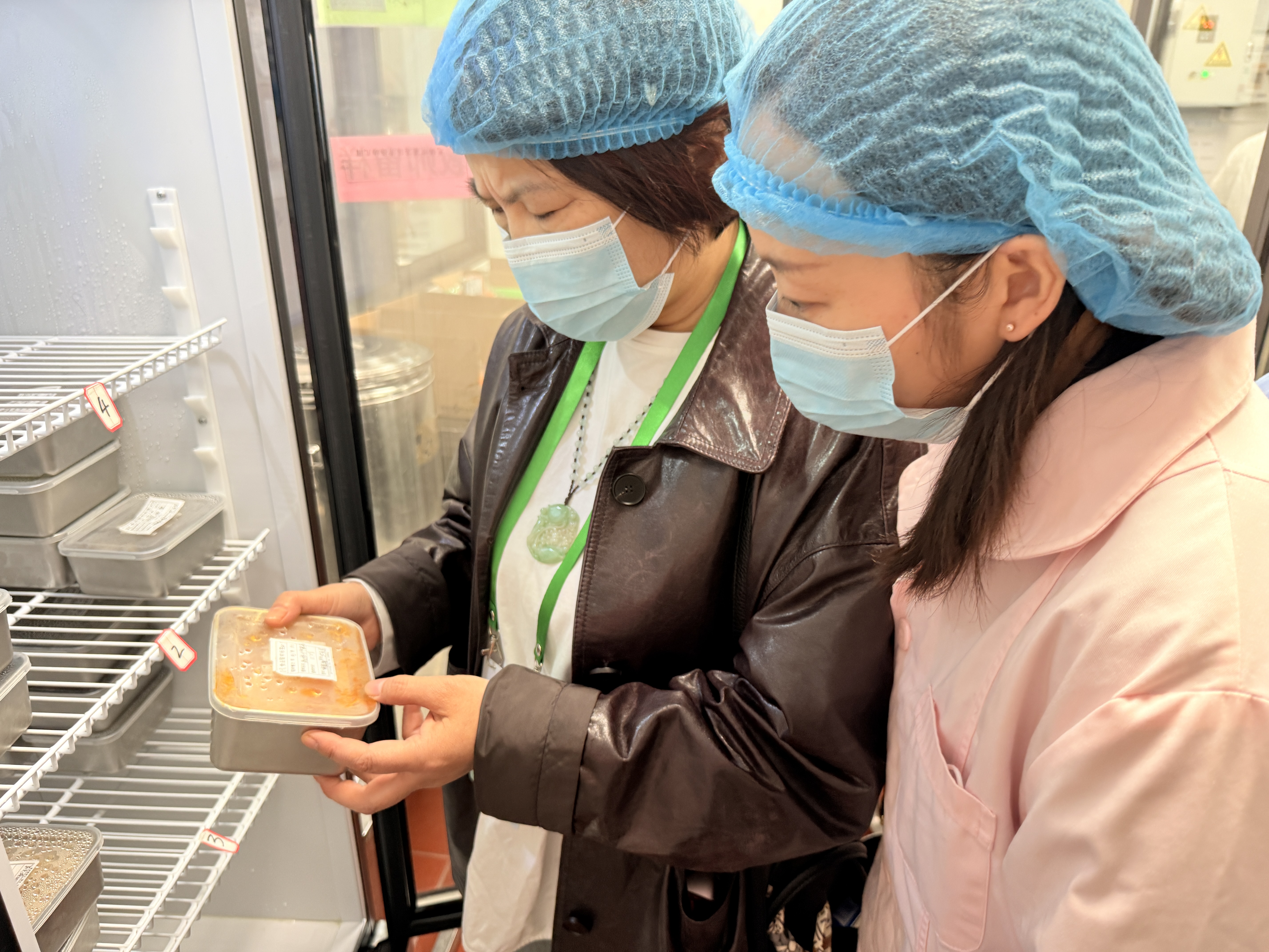 督学首先对校园环境展开细致排查,重点检查幼儿活动场所的设施安全、教师电动车充电区域的规范管理,“互联网+”明厨亮灶运转情况以及保安室“一键报警”设备的操作记录,确认安全防护机制落实到位。在食堂卫生安全检查环节,督学仔细核查冰箱运行状态、食品留样记录的规范性,对食材储存、加工流程的合规性给予现场指导,强调食品安全“零疏漏”的底线要求。随后,督学在办公室查阅相关台账,重点查看家长陪餐、教师陪餐记录的完整性,肯定了园所“陪餐+记录+反馈”的闭环管理模式,同时建议进一步细化陪餐过程中的幼儿饮食观察记录,助力膳食营养优化。