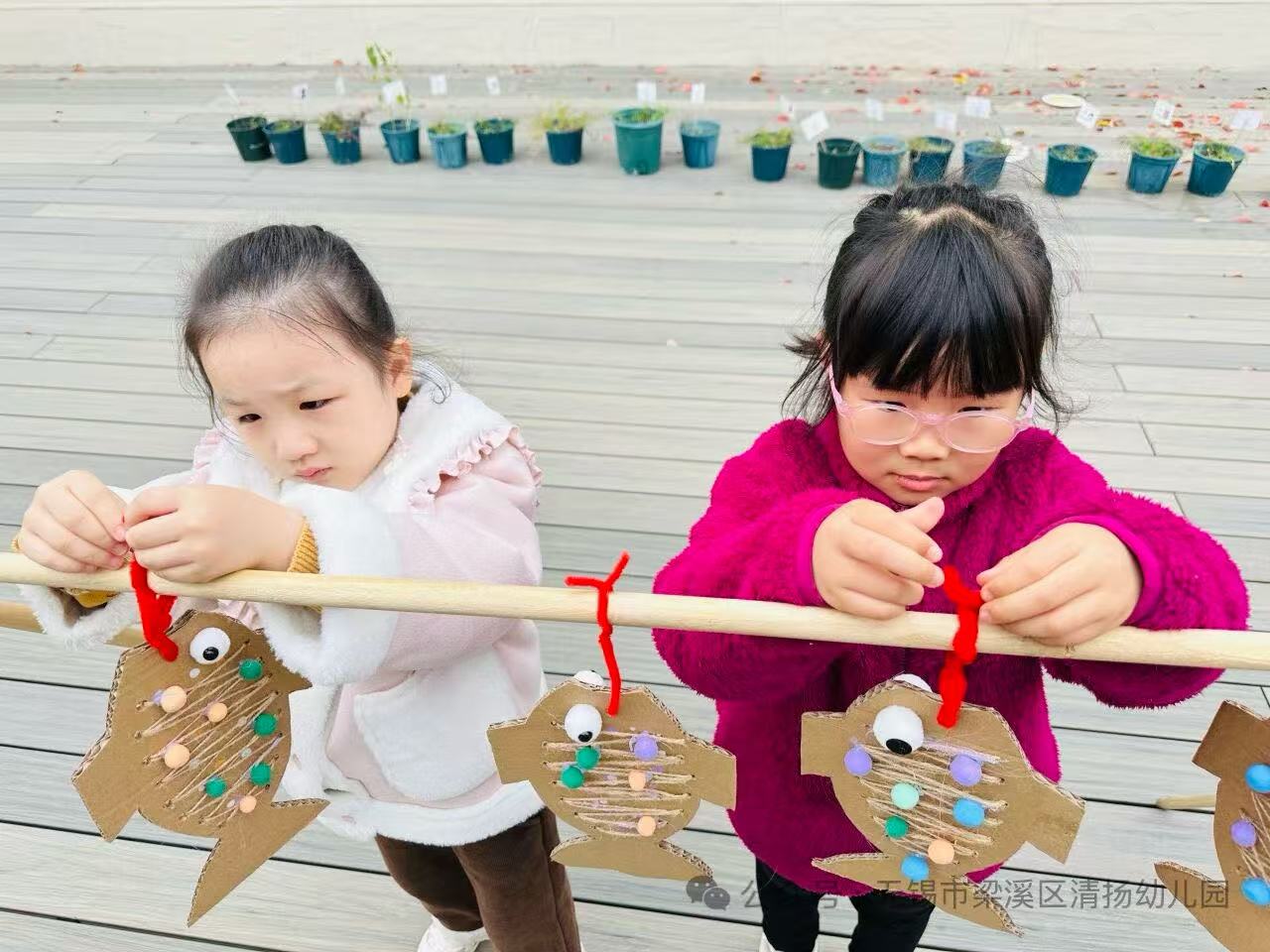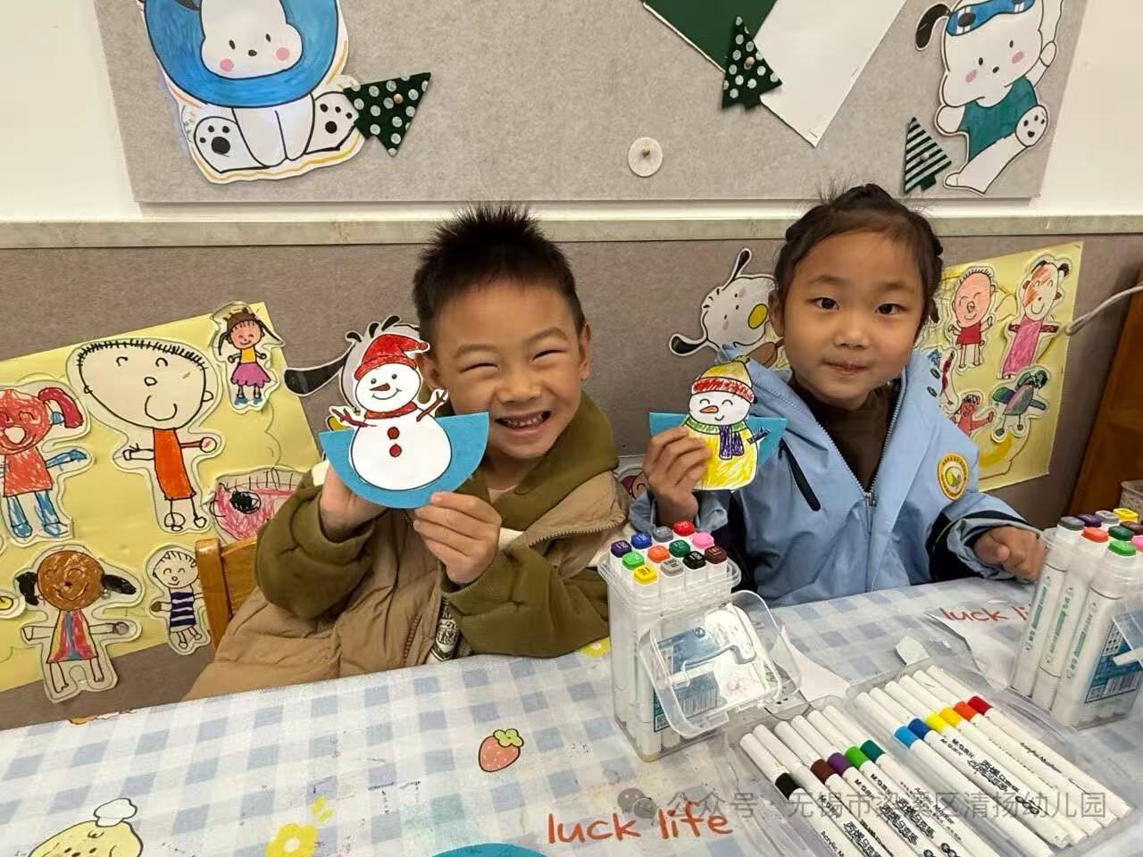 为了让幼儿多角度了解小雪节气,感知自然的更替、时节的变化,教师通过视频、PPT等多种方式,引导幼儿进一步感受传统节气文化,加深对小雪节气的认识和了解。孩子们用硬板纸裁剪出小鱼的形状,用打孔器点缀鱼身,再以麻绳、黏土等材料精心装饰。一条条创意小鱼在巧手中诞生,悬挂于教室,仿佛冬日里晾晒的鱼干,趣味十足。说到冬天,大家会想到什么呢?雪花、腊梅、棉衣?小朋友们想到了小雪人,这就是南方孩子对雪的执念呀!于是,我们一起做了漂亮的小雪人,摇摇摆摆、可可爱爱!让我们一起迎接冬天吧!寒冷的冬日阳光透过云层的缝隙,洒在幼儿园的操场上。看!小朋友们冬日坚持户外体能锻炼,释放活力,享受着温暖而美好的时刻。