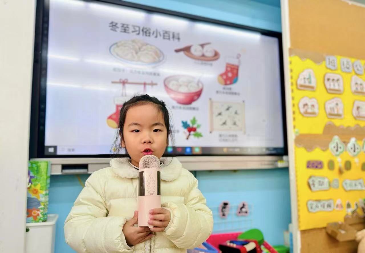 当冬日的暖阳洒满幼儿园的窗台,当冬至的风捎来岁末的诗意,孩子们用稚嫩的童声,吟出了节气里的古韵悠长。“冬至如年数九寒,阳生三候待春还。” 朗朗的诵读声在教室里回荡,小小的身影挺直脊背,眉眼间满是认真。这不是简单的念诗,是宝贝们与传统文化的温柔相遇,是把“冬至大如年”的暖意,藏进了平仄的韵律里。