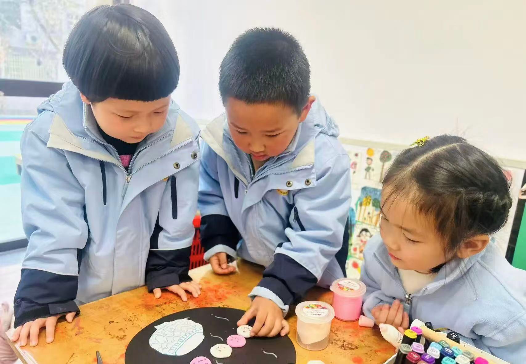 说到冬至,怎么能少了美食呢?教室里上演了一场“指尖上的魔法”。看,揉一揉、捏一捏、搓一搓,给汤圆穿上五彩斑斓的“外衣”,有的圆滚滚,有的胖嘟嘟,每一颗都藏着孩子们的奇思妙想。做好了五彩斑斓的“汤圆”,指尖的魔法还在继续。一个个汤圆,包裹着冬日的温暖;一幅幅图画,寄托着对春天的期盼。