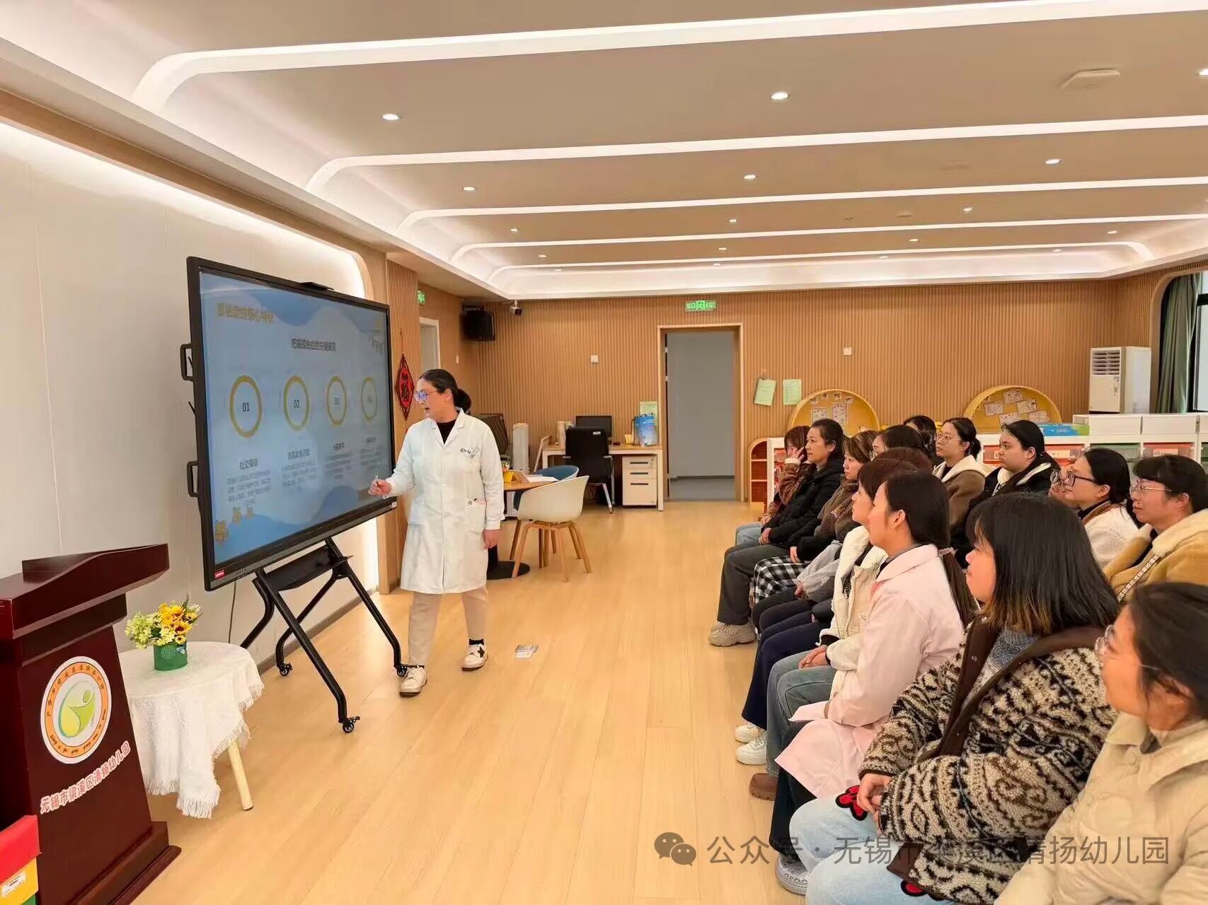 为进一步推进融合医康教工作,提升幼儿园教师对孤独症儿童的识别与干预能力,为特需儿童营造更加优质的成长环境,近日,清扬幼儿园邀请清名桥街道社区卫生服务中心儿保科朱医生,开展了专题讲座,并进行医教协同教育讨论与指导活动。